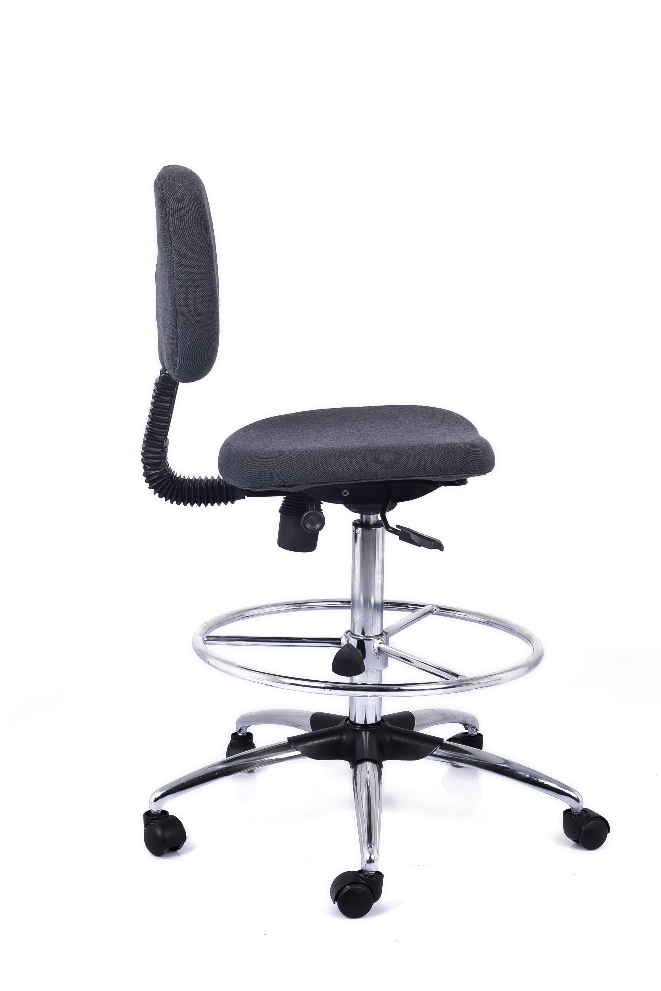 The ECO SEAT Chairs have been made to incorporate the Electrical properties of the ESD Chairs with the aesthetics and comfort of cloth upholstery at an economical price. The chair is also revolving type and height adjustable from the floor.